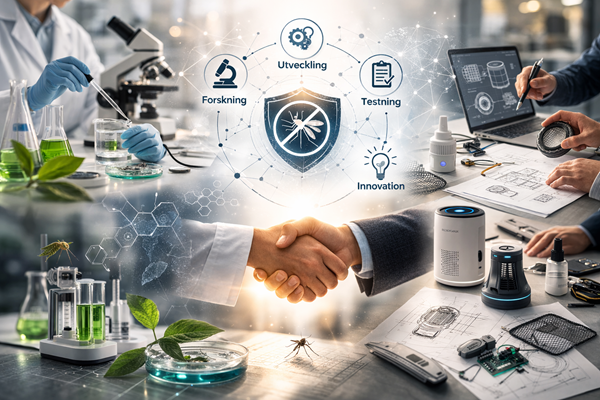 Våra samarbetspartners är erfarna utvecklare och specialister med djup kompetens inom forskning och produktutveckling. Tillsammans arbetar vi kontinuerligt med att ta fram och vidareutveckla innovativa lösningar inom förebyggande myggskydd. Genom systematiska tester, teknisk analys och praktisk utvärdering säkerställer vi att varje produkt uppfyller högt ställda krav på effektivitet, kvalitet och hållbarhet. Dessa samarbeten är en central del i vår strävan att ligga i framkant och erbjuda marknadsledande lösningar.